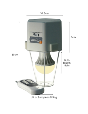 The  British designed iPowerLite® is an integrated power pack and dimmable light bulb with remote control, which uses the latest reliable and quality technology from Japan and the Far East. It is compact, lightweight and re-chargeable, providing up to 20* hours of warm flattering light, offering five levels of intensity from a subtle candlelight effect, up to the equivalent to 60 watts output, after being charged for just 3 hours. All components are fully accredited and hold the CE mark.
